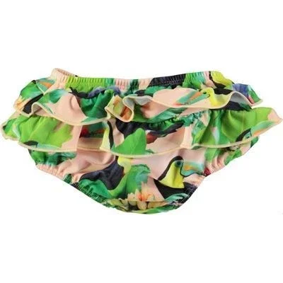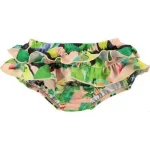 Bikinitrusse med fine flæsekanter og et fint digitalprint til babyer og små børn. Bikinitrussen har et ekstra indsyet indlæg, der sikrer at badetrussen holder tæt, således at det ikke er nødvendigt at bære ble.