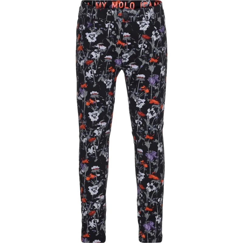 Jeggings i stretchy bomuld medfint blomsterprint. Bukserne har justerbar talje, bæltestroppe, lommer bagpå samt en fin broderet detalje på den ene baglomme. Jeggingsene sidder lige under hoften, har en smal benåbning og den stretchy kvalitet sikrer en god og behagelig pasform og giver samtidig en god bevægelsesfrihed.