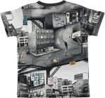 Kortærmet t-shirt i bomuld med city text digitalprint og mørkegrå kant ved halsudskæring. Dette produkt er Oeko-Tex certificeret.