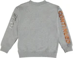 Gråmeleret sweatshirt med rund hals og broderet skrift på ærmerne. Kan kombineres med matchende bukser for et sporty look.