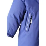 I denne smarte Reimatec®-vinterflyverdragt, som indgår i vores ORIGINALS-kollektion, kan børn lege udenfor hele dagen uden at blive våde. Den vand- og vindtætte flyverdragt er velegnet til frostvejr. Det slidstærke materiale er fremragende, når man kælker og boltrer sig i sneen – og takket være sin åndbarhed vil det også hjælpe børnene med at komme af med varmen. To flotte lynlåse i fuld længde gør det nemt at tage flyverdragten på, og den isolerende siddepude bagpå holder barnets bagdel tør under vinterlegen, uanset om der skal bygges en snemand eller kælkes. Det glatte, quiltede polyesterfor gør den nemmere at tage på og behagelig at have på i kombination med varme mellemlag. Den praktiske lynlåslomme foran er et godt gemmested til små skatte og en sut, når man er ude i det fri. Fodstropperne i silikone sikrer, at buksebenene bliver siddende, hvor de skal. Den aftagelige hætte beskytter mod kolde vindstød, men den er også sikker ved leg i det fri. Hætten er fastgjort med trykknapper og rykkes nemt af, hvis den hænger fast i noget. Kanten af hætten er desuden udstyret med et fleksibelt elastikbånd. Refleksdetaljer sikrer, at man også ser de små friluftstrolde efter mørkets frembrud. Denne funktionelle, vandtætte flyverdragt er nem at tage på og er det perfekte valg til aktive tumlinger, der drager på eventyr i vintervejret eller skal en tur i børnehave. Den plejevenlige vinterflyverdragt kan også tørretumbles.