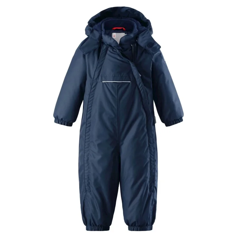 I denne smarte Reimatec®-vinterflyverdragt kan børn lege udenfor hele dagen uden at blive våde. Den vand- og vindtætte flyverdragt er velegnet til frostvejr. Det slidstærke materiale er fremragende, når man kælker og boltrer sig i sneen – og takket være sin åndbarhed vil det også hjælpe børnene med at komme af med varmen. To flotte lynlåse i fuld længde gør det nemt at tage flyverdragten på, og den isolerende siddepude bagpå holder barnets bagdel tør under vinterlegen, uanset om der skal bygges en snemand eller kælkes. Det glatte, quiltede polyesterfor gør den nemmere at tage på og behagelig at have på i kombination med varme mellemlag. Den praktiske lynlåslomme foran er et godt gemmested til små skatte og en sut, når man er ude i det fri. Fodstropperne i silikone sikrer, at buksebenene bliver siddende, hvor de skal. Den aftagelige hætte beskytter mod kolde vindstød, men den er også sikker ved leg i det fri. Hætten er fastgjort med trykknapper og rykkes nemt af, hvis den hænger fast i noget. Kanten af hætten er desuden udstyret med et fleksibelt elastikbånd. Den plejevenlige vinterflyverdragt kan også tørretumbles.