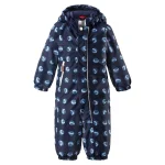 I denne smarte Puhuri - Reimatec®-vinterflyverdragt kan børn lege udenfor hele dagen uden at blive våde. Den vand- og vindtætte flyverdragt er velegnet til frostvejr. Det slidstærke materiale er fremragende, når man kælker og boltrer sig i sneen – og takket være sin åndbarhed vil det også hjælpe børnene med at komme af med varmen. En flot og lang lynlås gør det nemt at tage flyverdragten på, og den isolerende siddepude bagpå holder barnets bagdel tør under vinterlegen, uanset om der skal bygges en snemand eller kælkes. Det glatte, quiltede polyesterfor gør den nemmere at tage på og behagelig at have på i kombination med varme mellemlag. Den praktiske lynlåslomme foran er et godt gemmested til små skatte og en sut, når man er ude i det fri. Fodstropperne i silikone sikrer, at buksebenene bliver siddende, hvor de skal. Den aftagelige hætte beskytter mod kolde vindstød, men den er også sikker ved leg i det fri. Hætten er fastgjort med trykknapper og rykkes nemt af, hvis den hænger fast i noget. Den plejevenlige vinterflyverdragt kan også tørretumbles.
