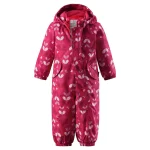 Fremragende vinterflyverdragt til tumlinger! Flyverdragtens hovedsømme er tapede, og den er fremstillet i et smudsafvisende og vand- og vindtæt materiale. Den isolerende siddepude giver varme i sneen. Et glat for og en lang lynlås gør det let at få den på, og taljen kan justeres. De to klaplommer kan være et sikkert gemmested til barnets små skatte.