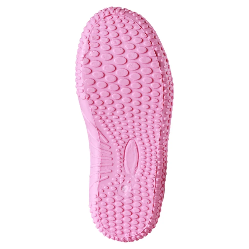 Det perfekte fodtøj til leg på stranden, svømmeture og leg om sommeren – uanset om man er i sandet eller i vandet. Velcrolukningen gør det nemt at tage strandskoene af og på. Materialet på overdelen beskytter mod UV-stråler, og det åndbare netmateriale sikrer en god komfort på varme sommerdage. Det termoplastiske gummi i ydersålen beskytter mod det varme sand og sikrer et godt fodfæste på såvel stenede strandbredder som på sejlture. Strandskoene er designet til at matche farverne i Reimas SunProof-kollektion med UV-beskyttelse.
