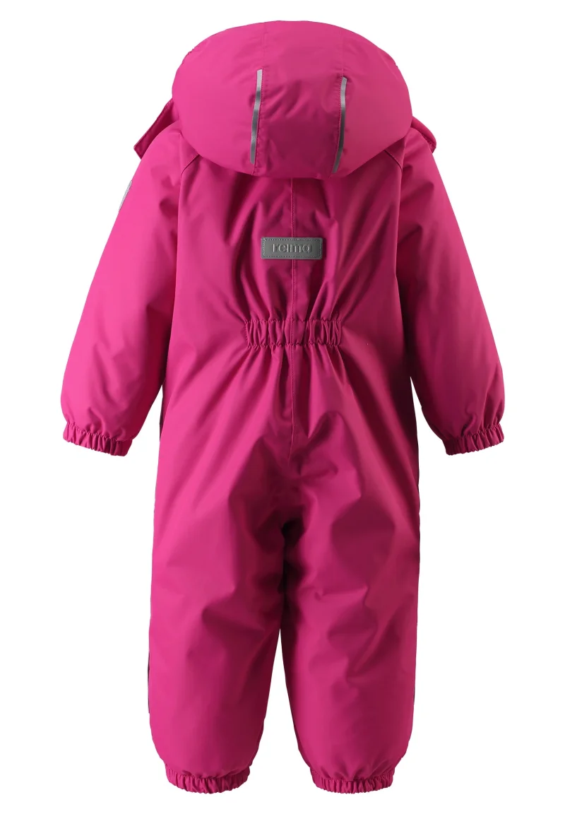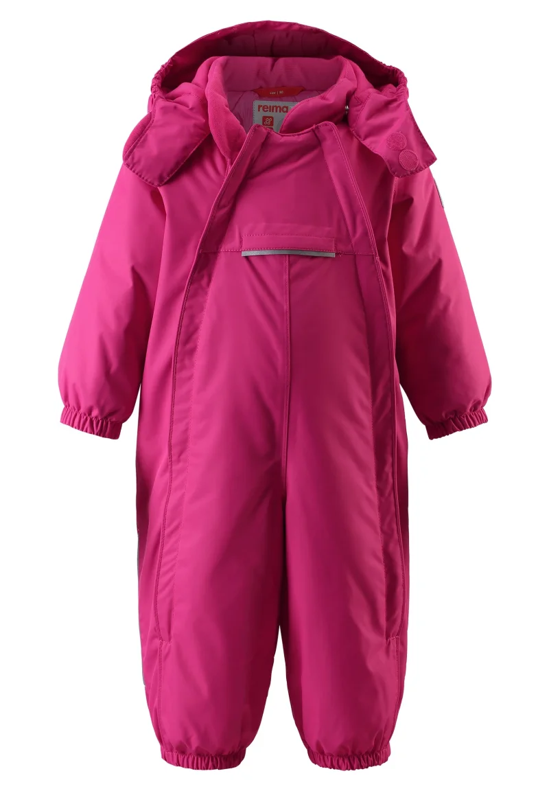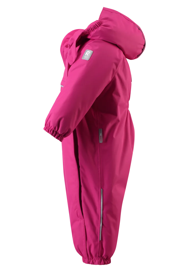 I denne smarte Reimatec®-vinterflyverdragt kan børn lege udenfor hele dagen uden at blive våde. Den vand- og vindtætte flyverdragt er velegnet til frostvejr. Det slidstærke materiale er fremragende, når man kælker og boltrer sig i sneen – og takket være sin åndbarhed vil det også hjælpe børnene med at komme af med varmen. To flotte lynlåse i fuld længde gør det nemt at tage flyverdragten på, og den isolerende siddepude bagpå holder barnets bagdel tør under vinterlegen, uanset om der skal bygges en snemand eller kælkes. Det glatte, quiltede polyesterfor gør den nemmere at tage på og behagelig at have på i kombination med varme mellemlag. Den praktiske lynlåslomme foran er et godt gemmested til små skatte og en sut, når man er ude i det fri. Fodstropperne i silikone sikrer, at buksebenene bliver siddende, hvor de skal. Den aftagelige hætte beskytter mod kolde vindstød, men den er også sikker ved leg i det fri. Hætten er fastgjort med trykknapper og rykkes nemt af, hvis den hænger fast i noget. Kanten af hætten er desuden udstyret med et fleksibelt elastikbånd. Den plejevenlige vinterflyverdragt kan også tørretumbles.