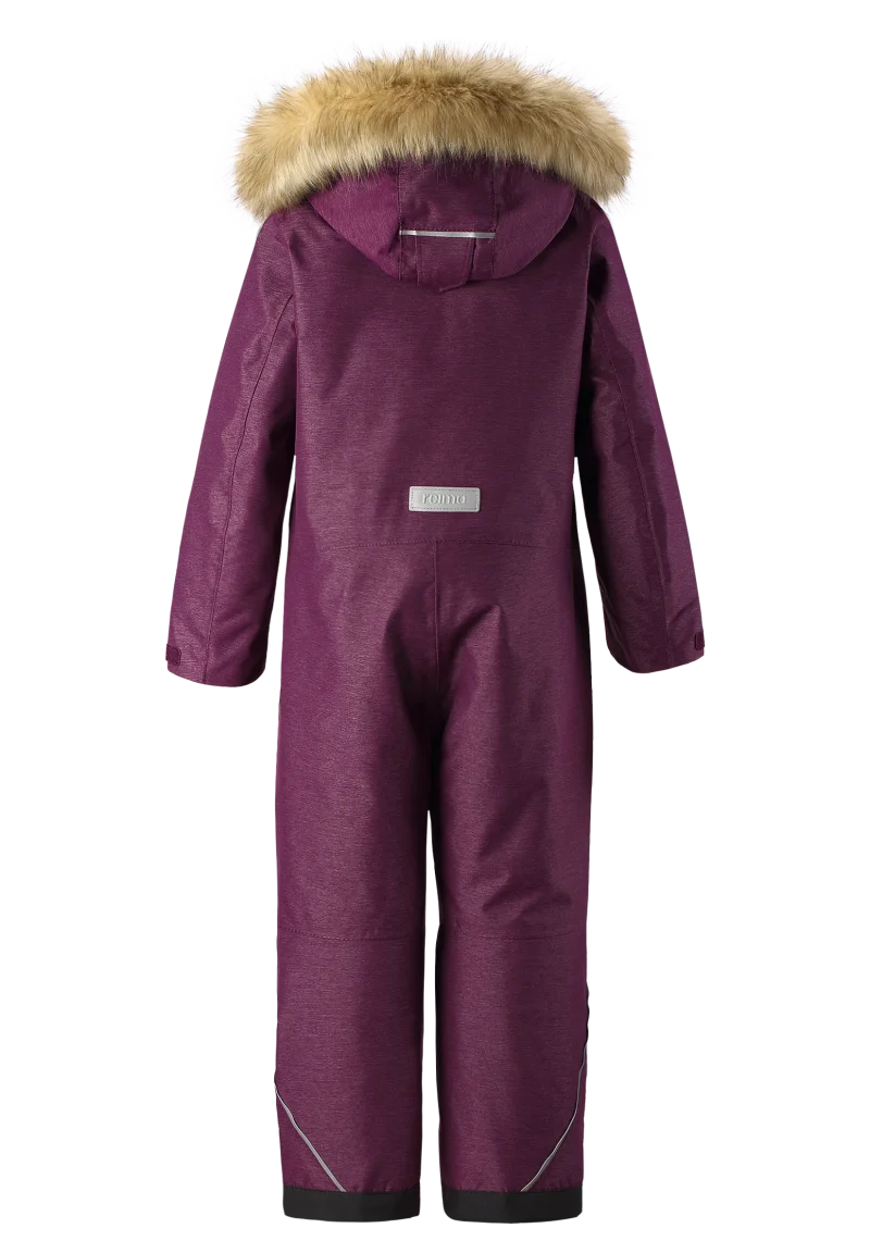 Fuldstændig vandtæt og slidstærk Reimatec vinterflyverdragt til børn med alle sømme forsejlet vandtætte. Meget slidstærke forstærkninger på benenderne. Denne funktionelle flyverdragt er fremstillet i et vindtæt og åndbart materiale, som holder dit barn varmt og tørt, uden det får det for varmt. Flyverdragten har et glat polyesterfor. Hvis man ønsker det, kan flyverdragten justeres i taljen, så den lige model får en unik, mere tætsiddende pasform. Den har også justerbare manchetter. Den aftagelige og justerbare hætte beskytter ikke kun mod kølige vindpust – den er også sikker ved leg i det fri. Hætten er fastgjort med trykknapper og rykkes derfor nemt af, hvis den hænger fast i noget. Bemærk den superbløde hættekant i imiteret pels. To lynlåslommer, en lomme til et liftkort på ærmet. Materialet er smudsafvisende og kan også gå i tørretumbleren. Refleksdetaljerne fuldender stilen. Vaskes separat på vrangen. Tag kant i imiteret pels af inden vask. Luk lynlåse og velcrobånd. Anvend vaskemiddel uden blegemiddel. Anvend ikke skyllemiddel. Tages ud af maskinen, når programmet er færdigt for at undgå farveforandringer.