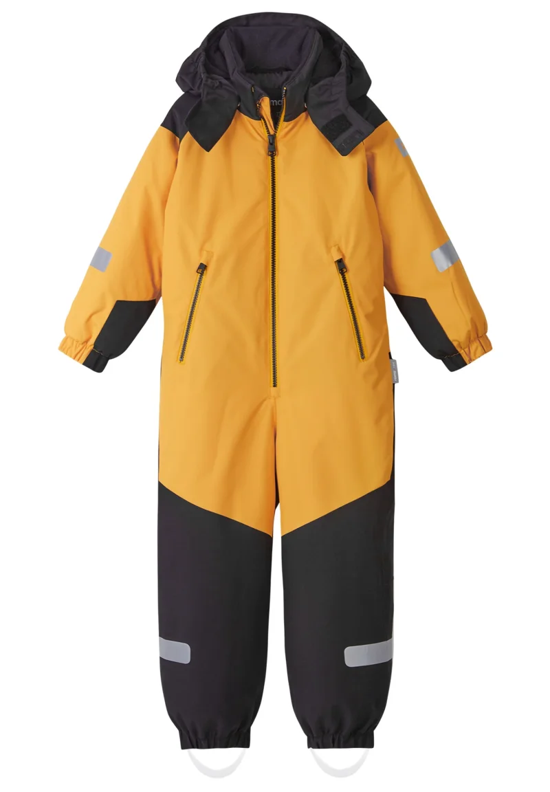 Sporty Reimatec-flyverdragt til børn. Fuldstændigt vandtæt og med kraftige forstærkninger. Indeholder genanvendte materialer. Store refleksdetaljer.