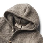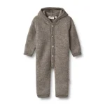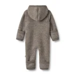 Skøn langærmet fleece heldragt med hætte i blødt merinould til din baby.