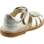 Sandalen er i skind både indvendigt og udvendigt og reguleres med to velcroremme.