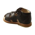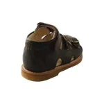 Babysandal fra Arauto Rap. Er lavet i brunt skind og har rågummisål. Lukkes og justeres med 3 velcroremme.