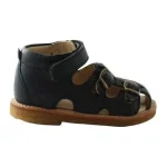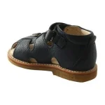 Babysandal fra Arauto Rap. Er lavet i navy skind og har rågummisål. Lukkes og justeres med 3 velcroremme.