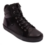 Rap skind vinterstøvle med varmt foer og snørrebånd samt lynlås i siden.