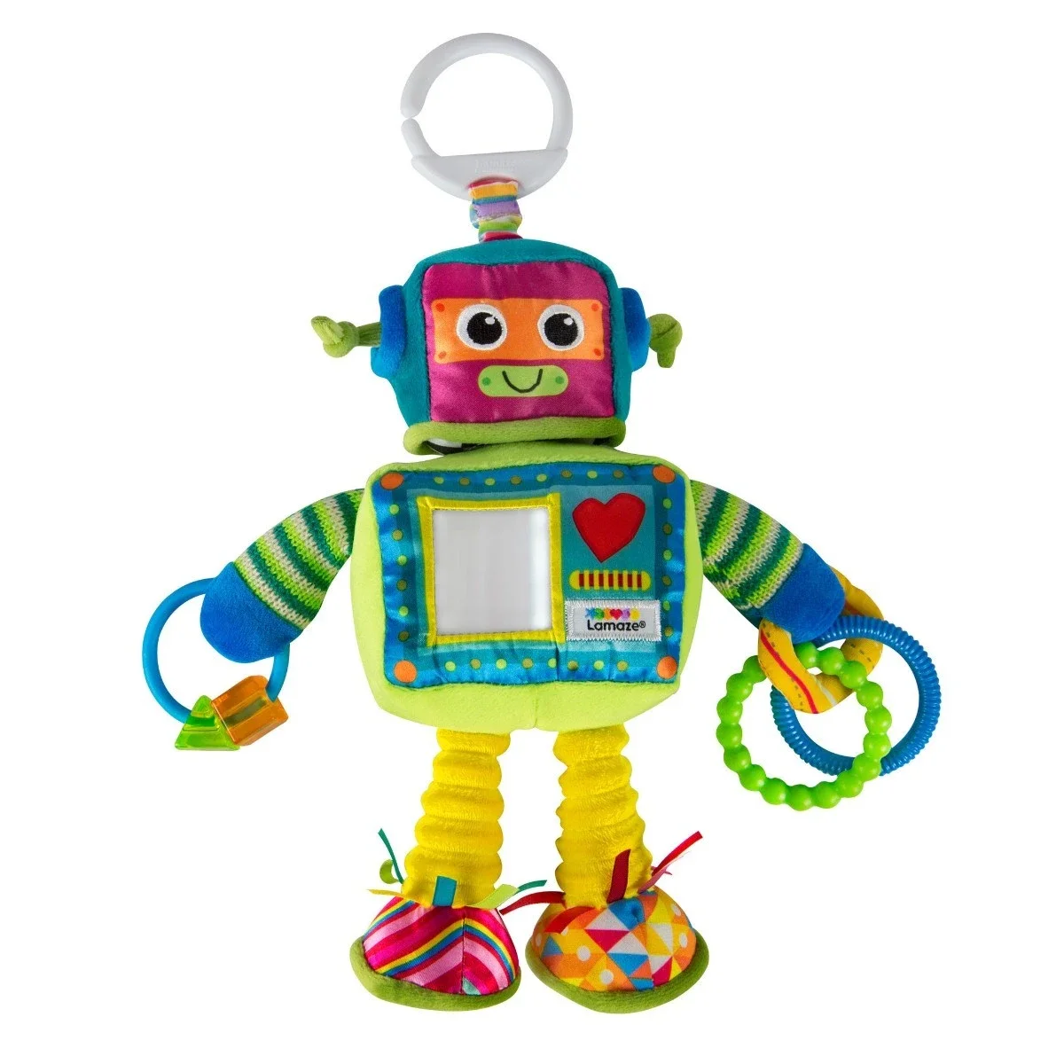 Lamaze - RobottenRobotten med sjove farver, forskellige strukturer og sjove lyde, der er med til, at stimulerer din babys sanser. Med den praktiske ophæng, kan man nemt have ham med på farten.