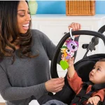 Den glade koala har klare farver, kontraster og mønstre, der stimulerer babys syn. Pibelyd og knitrende teksturer opfordrer baby til at gribe ud efter, trykke på og udforske koalaen igen og igen. Den store clips gør det nemt at sætte koalaen fast allevegne, og størrelsen betyder, at den kan puttes i en lomme eller klemmes fast på en taske, når den ikke er i brug. Nem at tage med på farten eller bruge som ekstra vedhæng i et aktivitets-stativ, i barnevognen eller klapvognen. Stimulerer: Taktilsans, syn og hørelse.
