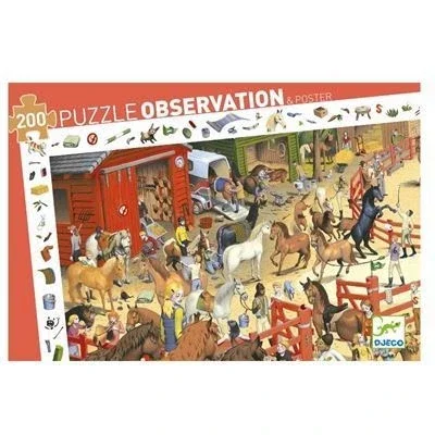 Det originale observationspuslespil fra Djeco. Når puslespillet er lagt, skal man i motivet, finde de mange små motiver, der er tegnet rundt i rammen. Mange timers underholdning. 200 brikker.
