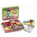 En flot æske legemad fra Djeco. Æsken er fuld af lækker mad i træ og filt, der kan sættes på de medfølgende spyd. Selve æsken bruges som grill for at stege gill-spydende over ""ilden"".
