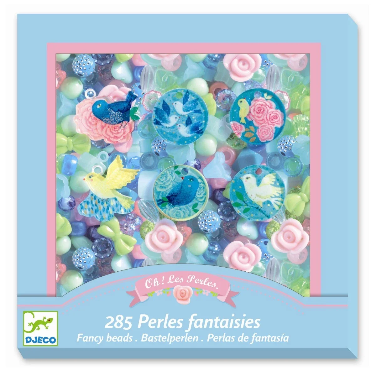 Er du vil med fugle skal du have denne flotte æske fra Djeco fuld af farverige plastperler. Skab dine egne flotte smykker med de fine perler og smukke vedhæng.