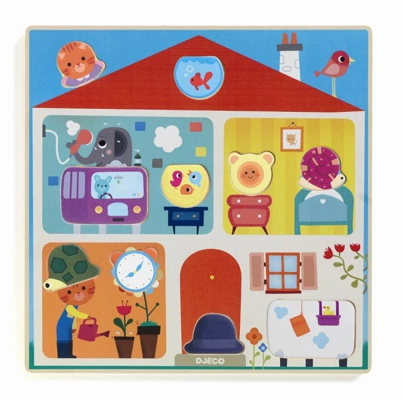 Sjovt puslespil hvor brikkerne passer flere steder så barnet kan lege og bytte rundt på brikkerne.