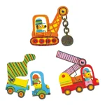 Et enkelt lege-/lærespil, hvor der skal samles 6 forskellige skøre biler, der hver består af 2 brikker. På den ene brik sidder en sjov bevægelig del.