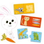 Et flot og lærerigt spil for de mindste. Her skal de finde ud af, hvad de forskellige dyr spiser, og sætte disse 2 brikker sammen. 20 brikker i alt.