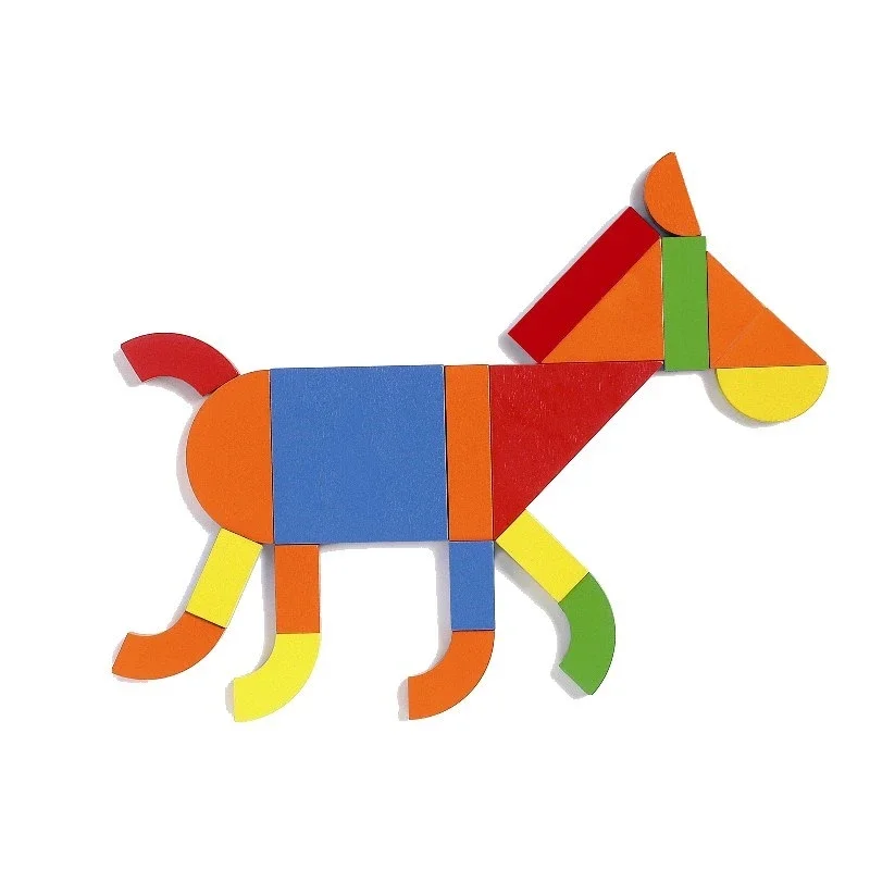 Lækker trææske indeholdende forskellige magnetiske former, samt 12 vendbare idékort, med forslag til flotte figurer.
