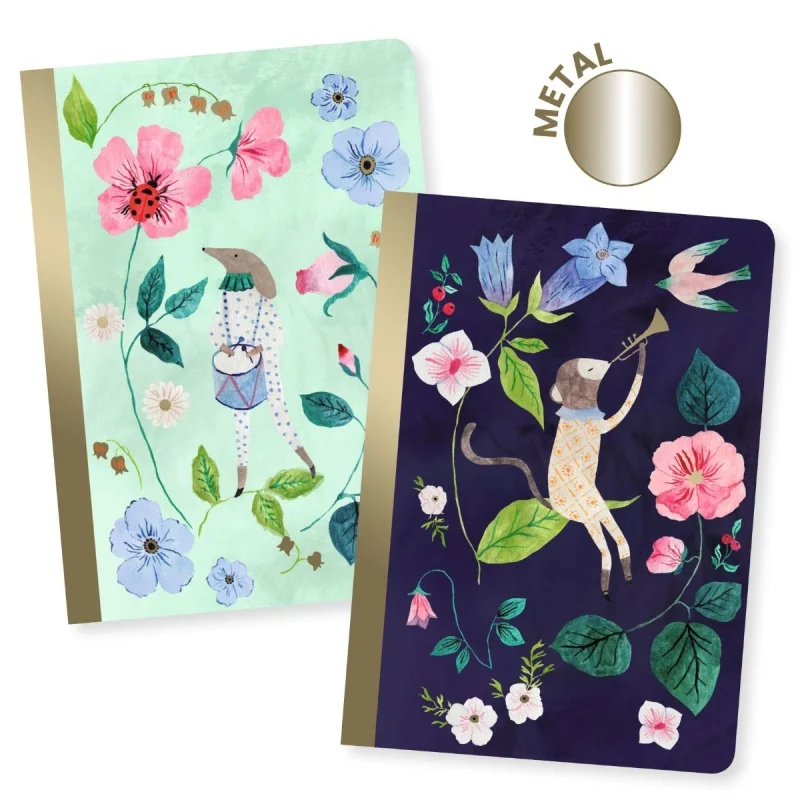 2 smukke notesbøger fra Djeco med fantasifulde forsider.