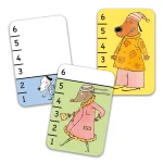 Sjov idé til det klassiske kortspil krig, hvor også de mindste i familien kan være med. For at gøre det enklere, har vært kort en farveafgrænsning, der svarer til kortets talværdi, så det gør det nemmere for de mindste, at måle sig frem til, hvis kort der slår hvis, når man ikke endnu kender tallenes værdi. I dette tilfælde, kan man se, at de gule kort, slår det grønne og blå kort.