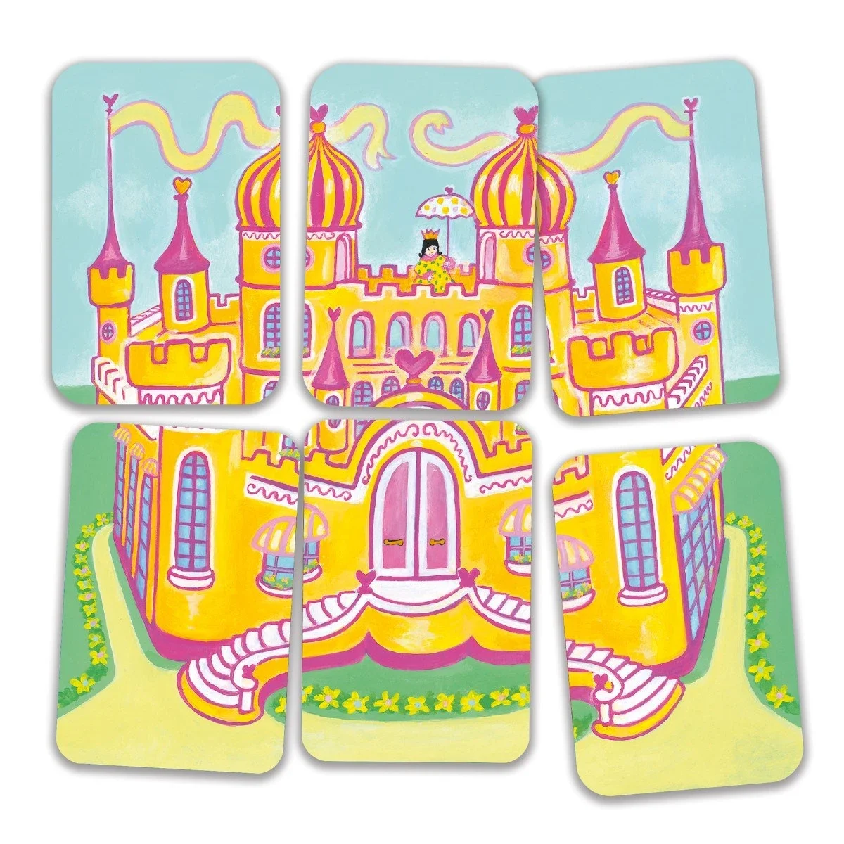 Et strategisk spil, hvor det gælder om at være den første, der får bygget sig et slot. Undervejs kan man være heldig og trække fekort og diamanter, der senere kan bruges til at købe slotsdele fra modstanderne, eller undgå hekseangreb.