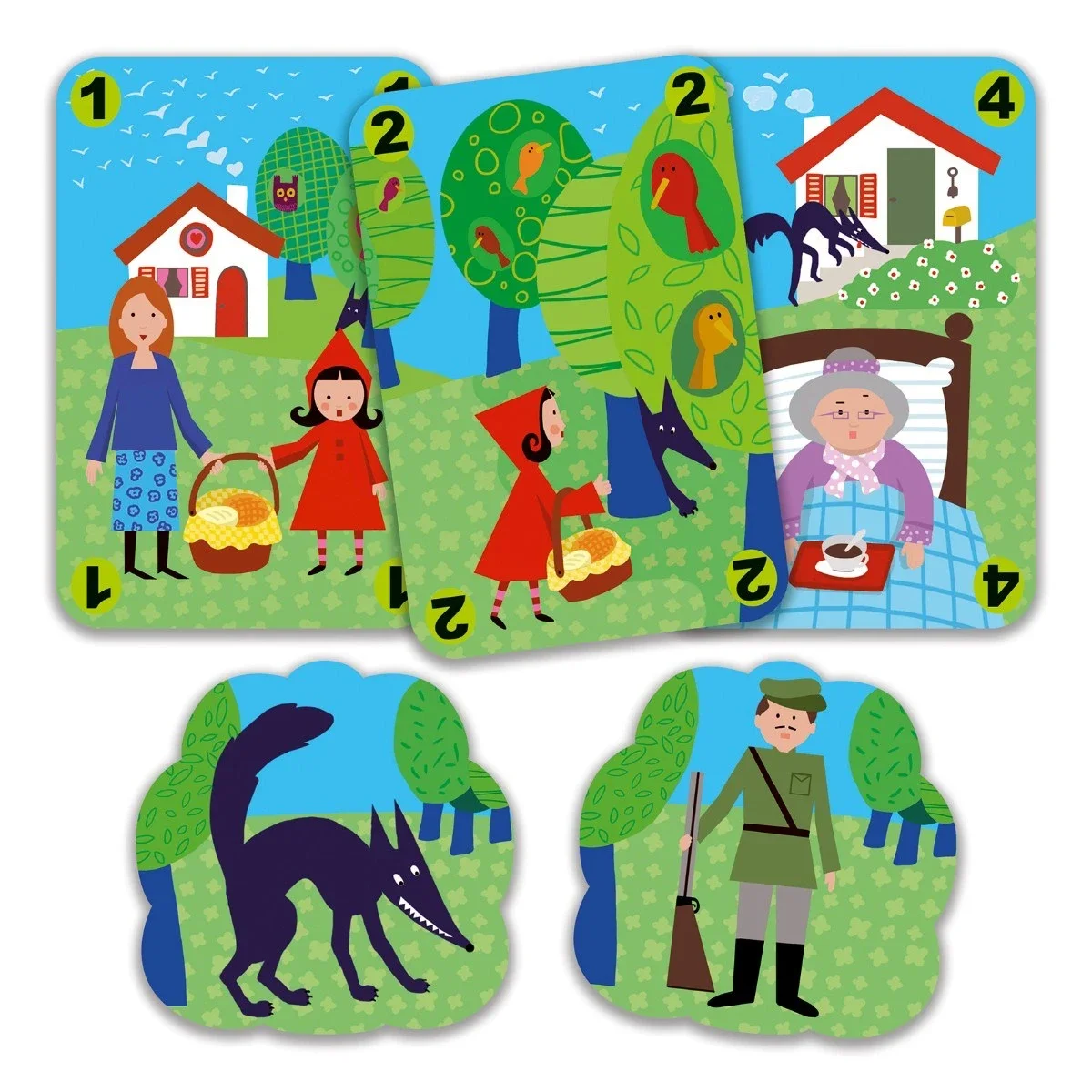 Et simpelt strategispil. Vinderen er den, der først får samlet sig de 6 forskellige kort, der danner historien om Rødhætte.