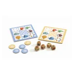 Djeco har lavet en nyfortolkning af nogle af de allermest klassiske spil. Her et traditionelt Yahtzee spil, men i en fin forenklet Djeco udgave, så man har en plade til at holde regnskab på sine slag.