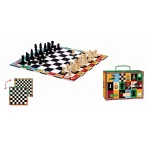 En flot kuffert indeholdende 2 klassiske spil, skak og dam.