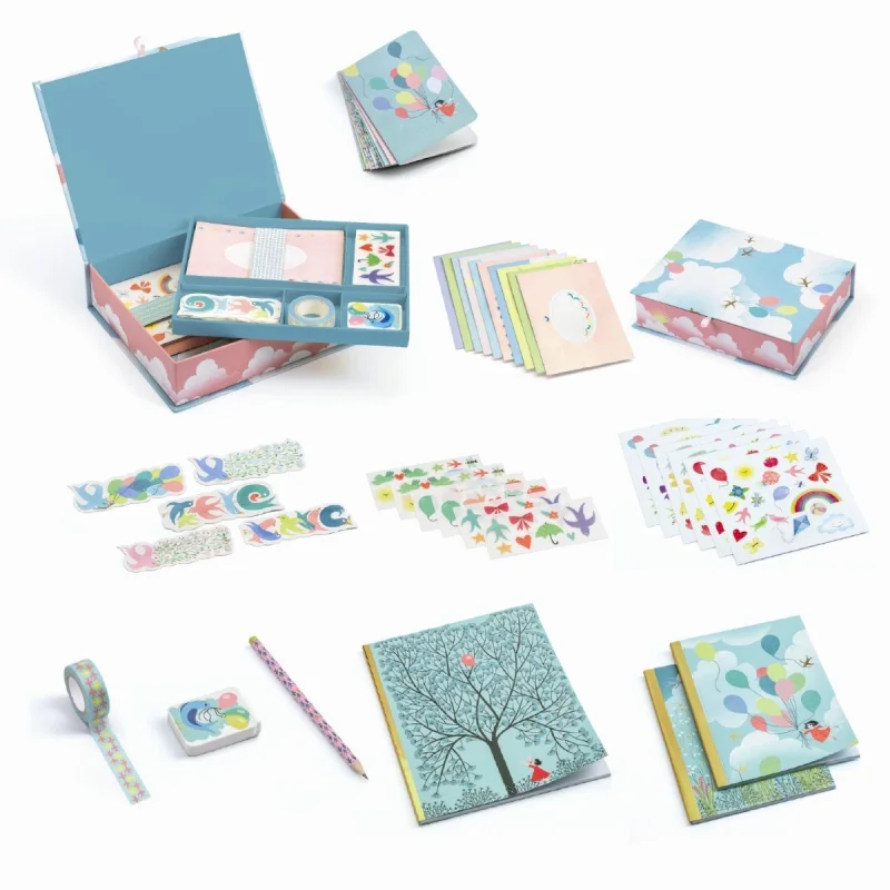 Djeco Lovely Paper Charlotte æskeBedårende boks sæt fra Djeco fyldt med bla. det skønneste brevpapir, kuverter,notesbøger, viskelæder, blyant og masking tape. Selv æsken er et lille kunstværk i sig selv.