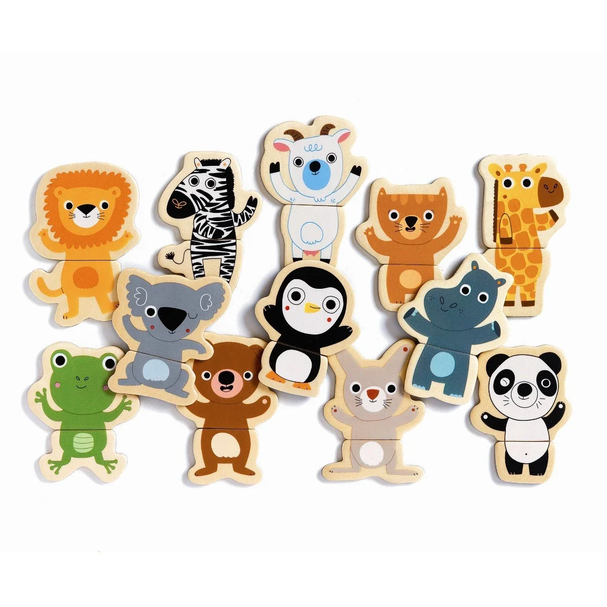 Søde små magnetiske dyr i træ, der kan pusles sammen på forskellig vis. Hvert dyr består af kun 2 dele, der gør det nemmere for de mindste.