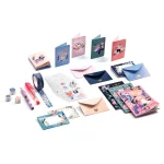 indeholder: 15 minikort + 15 minikuverter + 4 klistermærkeark + 1 tape + 1 gelpen + 1 blyant + 3 viskelædere.