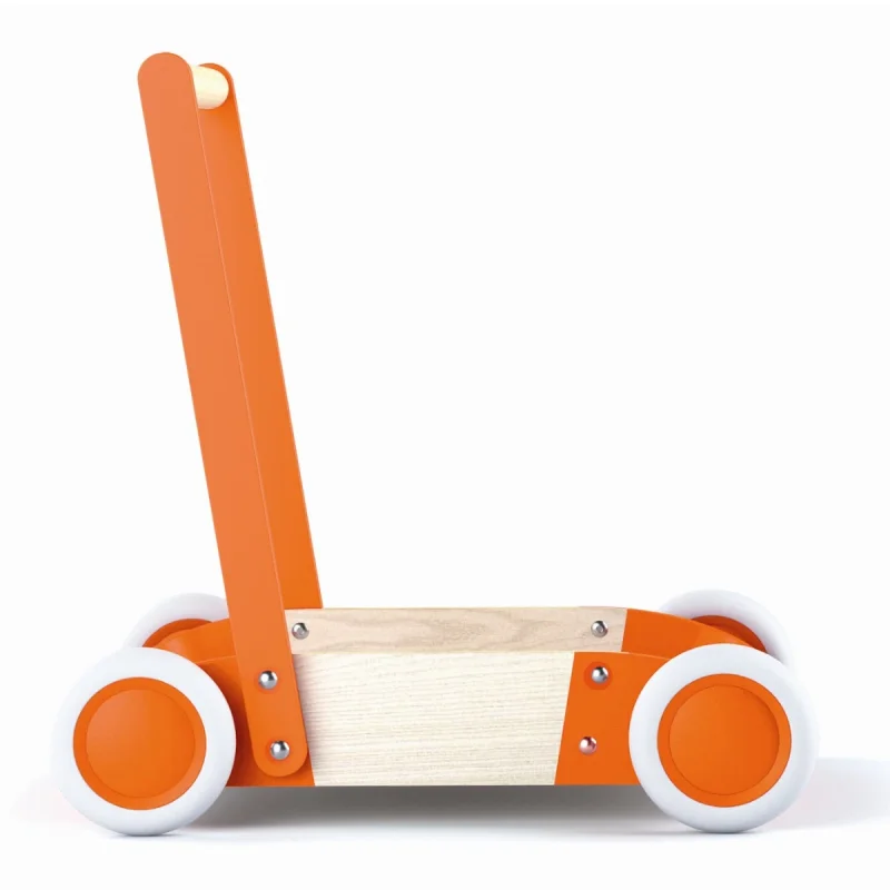 kombinationen af plast og træ giver gåvognen et helt unikt og smukt udseende.
