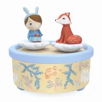 Fin spilledåse med 2 søde figurer, der snurrer rundt mens musikken spiller. Melodi: "Lullaby" af Franz Schubert.