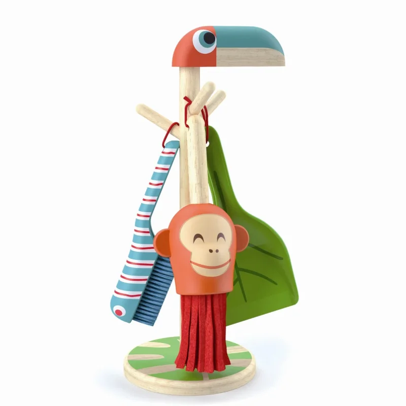 Nu bliver det helt sjovt at gøre rent, med dette flotte sæt fra Djeco. Den flotte Tukan fugl holder praktisk på både kost, svaber samt fejeblad.