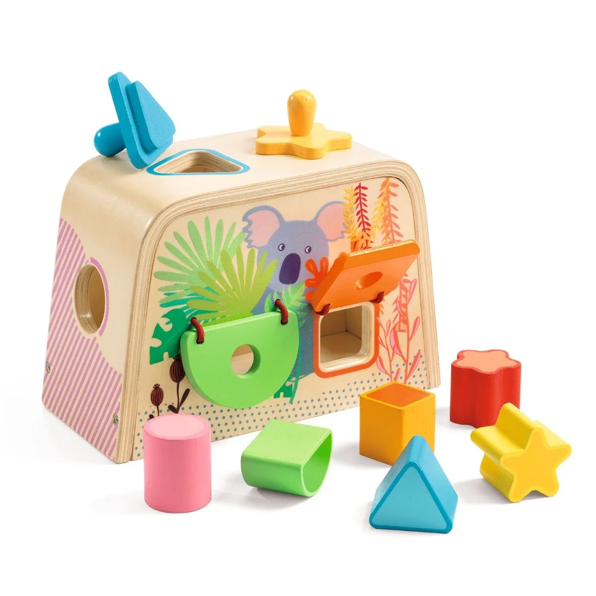 Et legetøj med flere aktiviteter for øje-hånd koordinationen og finmotorikken. Her skal du både finde de rigtige former og måske ovenikøbet åbne for en lem for at kunne putte den klods igennem. En sjov og anderledes puttekasse fra Djeco med endnu flere aktiviteter end normalt.