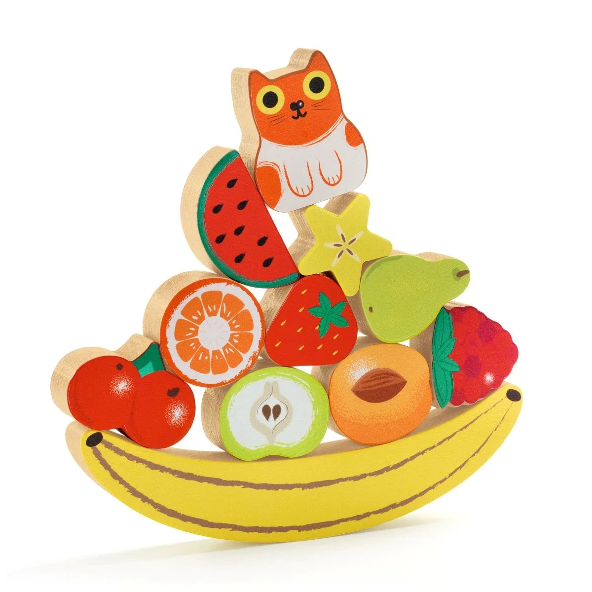 Meget mere end blot et puslespil fra Djeco. Du kan også øve dine motoriske evner samt tålmodighed ved at få alle elementerne til at balancere ovenpå bananen.