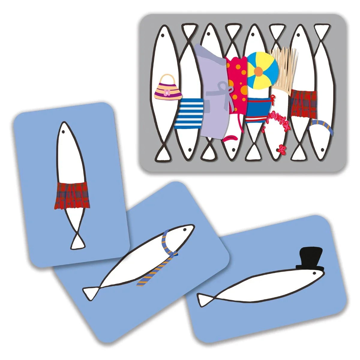 Et sjovt observationsspil, hvor det gælder om, at være den først til at komme af med sine kort. Et af de store sardinkort vendes, hvorefter alle deltager i 5 sek. Får lov at se på kortet. Herefter vendes bagsiden opad igen, og spillerne må nu samle deres kortbunke op, og se om de kan huske, hvilke sardiner de netop så. Disse kort lægges på bordet, og når alle har lagt, vendes det store sardinkort igen, og der kontrolleres, om man har husket korrekt. Har man lagt et forkert kort, skal man tage kortet op igen, samt have et kort mere op som straf.