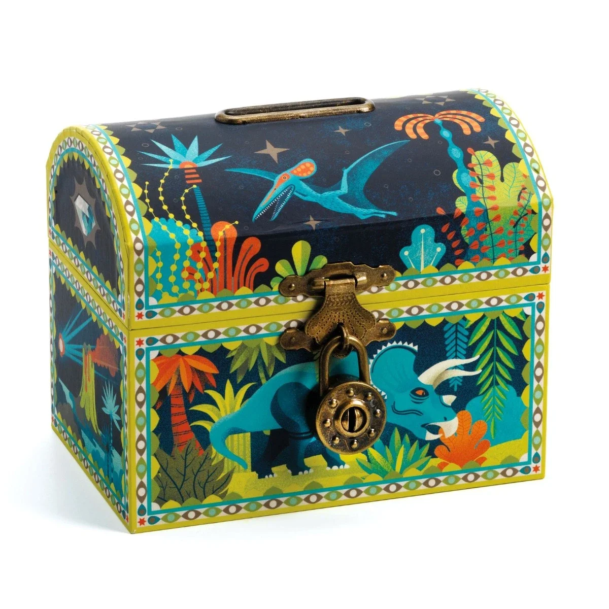 Djeco - Sparebøsse - Kiste med dinosaurer og lås