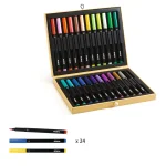 Djeco - Kreativ farver - kuffert med filtpenneTænk at kunne åbne sin helt egen kuffert, fuld af flotte Djeco tusser sat i sirlig farveorden. Sikken et syn. 24 flotte farver med penselspids. Som det allerførste kan du starte med at dekorere den fine kuffert, så den bliver din helt personlige kuffert med lige præcis de farver, du synes er allerflottest.