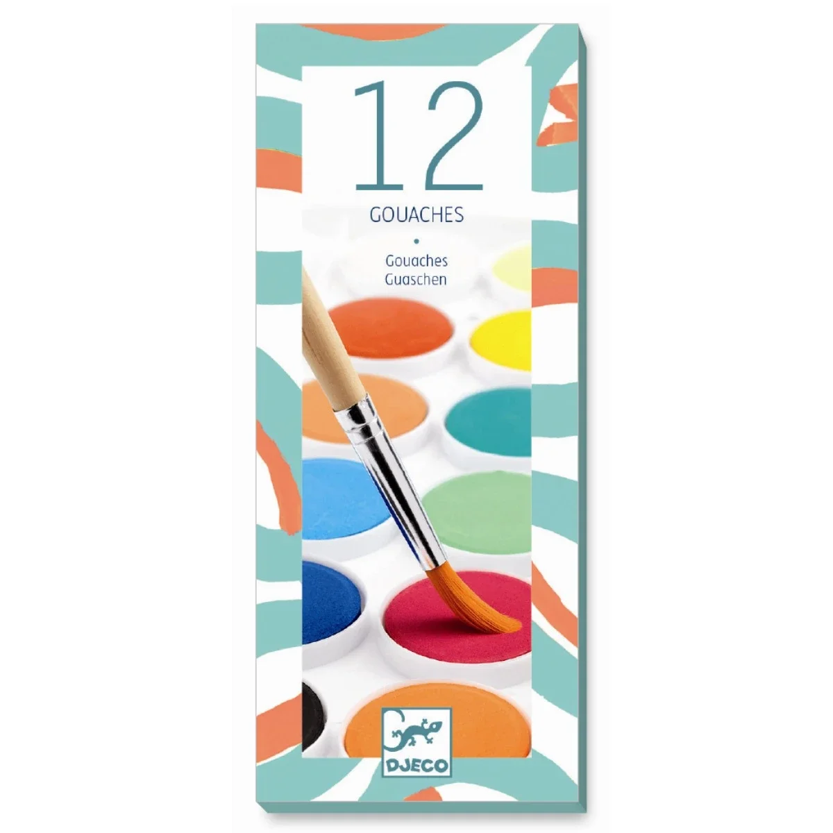 Djeco - Vandfarve - 12 klassiske farverFlot palette med 12 vandfarver i klassiske farver. Der medfølger 1 stk. pensel.