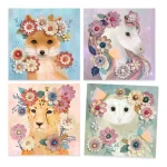 De fin blomster samles og sættes fast på de 4 smukke motiver med de farvede kuvertlukkere. Hermed opstår der en flot 3D effekt, der fuldender tegningerne.