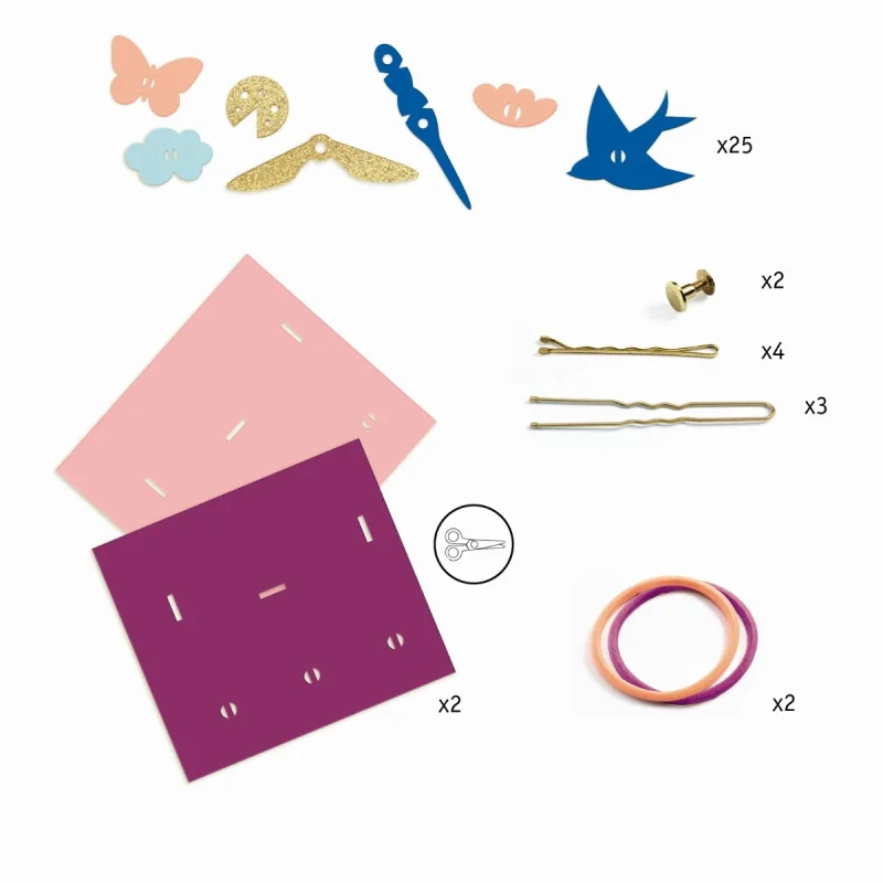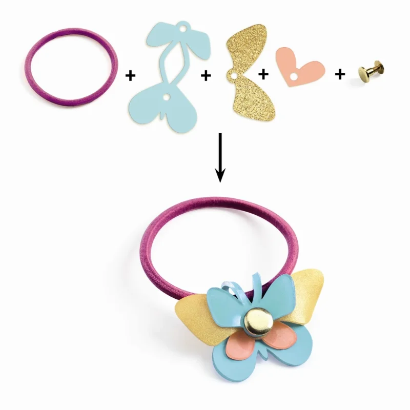 De forskellige dele til hårpynten samles på en smart og enkel måde af det bløde plast. Herefter skal det bages i ovnen for at hærde og blive hårdt og kan fæstnes på hårelastikker og hårmåle.