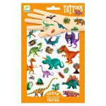Seje farverige Djeco tatoveringer med dinosauruser. 2 ark fyldt med flotte tatoveringer. Tatoveringerne er dermatologisk testede.