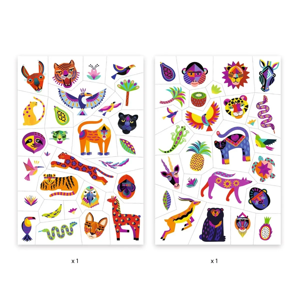 I denne pakke får du flere end 50 flotte og farvestrålende store og små tatoveringer. Tatoveringerne er dermatologisk testede, men det er en god idé, altid først at test med en lille tatovering, om barnet kan tåle dem.