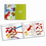 En fin pakke indeholdende 6 forskellige sprællemandsdukker, der skal samles med de medfølgende klips. Herefter kan de klistres fast på den medfølgende pind, så de kan bruges til teater.