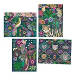 Smukke scratch kort med motiver af dyr i den farverige jugnle. Pakken består af 4 scratch kort samt en træpind. Ved hjælp af træpinden, skal man kradse motiverne frem på kortene. Djecos kreative serie er lavet af kunstnere så det sikre et flot resultat for barnet.